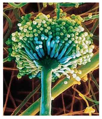 Рис. 2.9.Грибы рода Aspergillus fumigatus. От фиалид отходят цепочки конидий