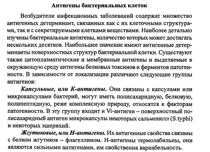 Антигены бактерий по локализации подразделяют на капсульные (К), соматические (О), жгутиковые (Н) и антигены экзопродуктов. В свою очередь К - антигены разделяют на (L, В) термолабильные и (А, М) термостабильные антигены.