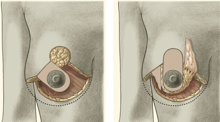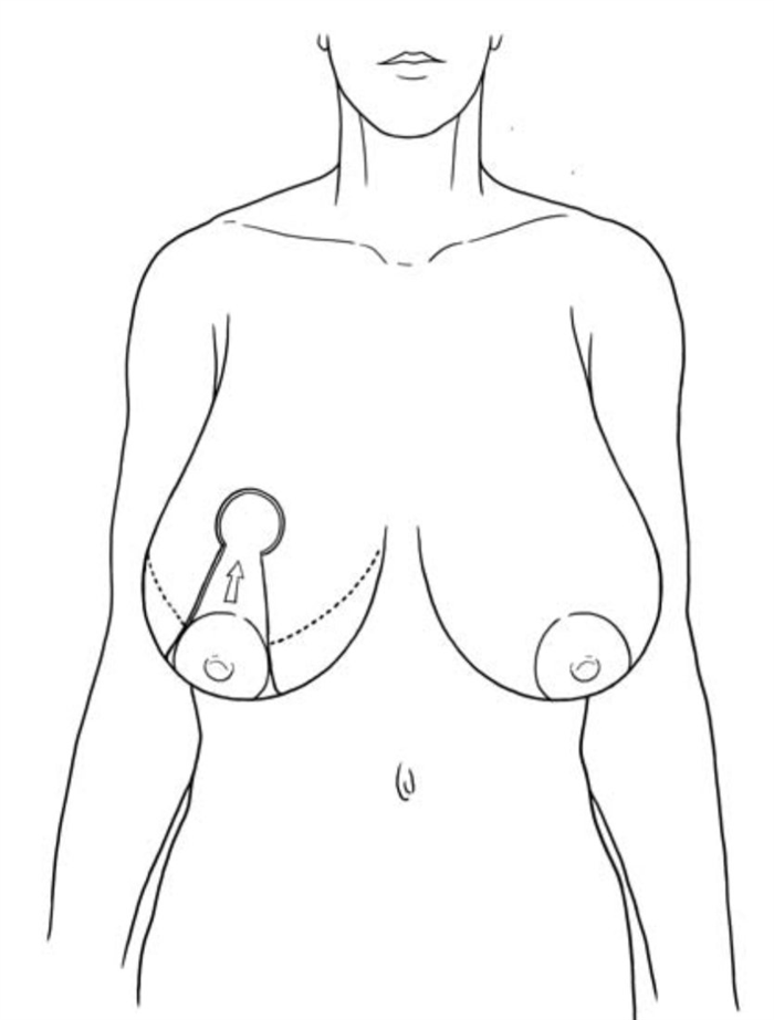 В течение некоторого времени косметическая хирургия пыталась максимально сократить количество разрезов, хотя это не всегда возможно. Чаще всего делается надрез в форме якоря вокруг ареолы, а затем вертикально вниз до подгрудной складки, которая разрезается горизонтально. Когда удаление лишней ткани завершено, ареола и вся грудь поднимаются и сшиваются.