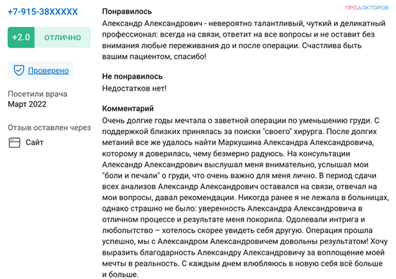 Доктор, спасибо, что помогли решить проблему моей большой груди. Особая благодарность от мужа. Он остался в восторге от естественной формы.