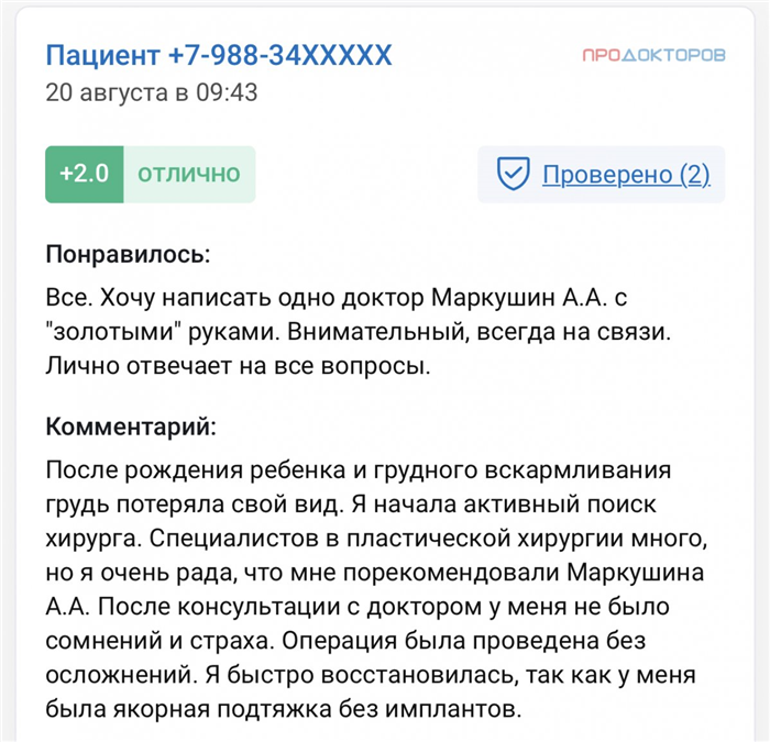 Максим Александрович, спасибо за красивую, молодую грудь. Шрамы сейчас лазером шлефую. Теперь мне легче подбирать красивое белье и купальники.