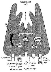 Механизм стимуляции и торможения секреции НС1 различными нейротрансмиттерами и гормонами неодинаков в зависимости от вида лиганда, рецептора и вторичных мессенджеров.