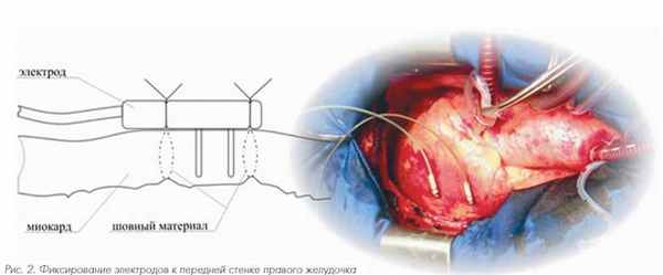 Рис. 2. Фиксирование электродов к передней стенке правого желудочка