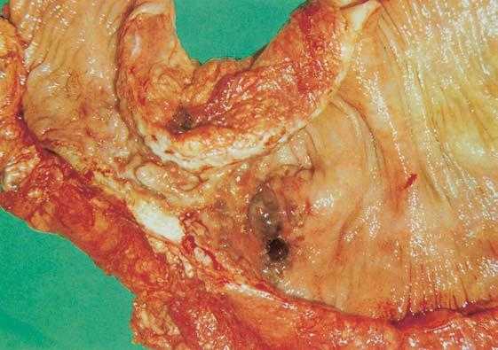 -петля с утолщенными стенками теряет свою эластичность и становится ригидной, вытянутой;