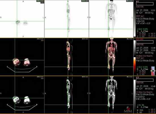 • В литературе имеется описание клинического случая, где ПЭТ/КТ оказалась эффективной при дифференциальной диагностике периостальной хондромы и периостальной хондросаркомы на основании порогового значения максимального стандартизированного показателя накопления 2,0 или 2,3