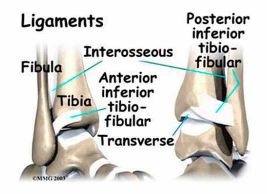 Связки могут быть слегка растянуты или грубо разорваны вплоть до формирования диастаза (щели) между большой и малой берцовыми костями голени. Происходит это при наружной ротации (повороте) стопы, при избыточном ее тыльном сгибании или отведении.