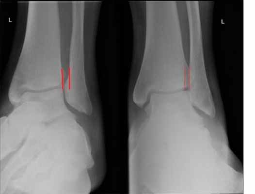 1. Рентгенография при повреждении межберцового синдесмоза: