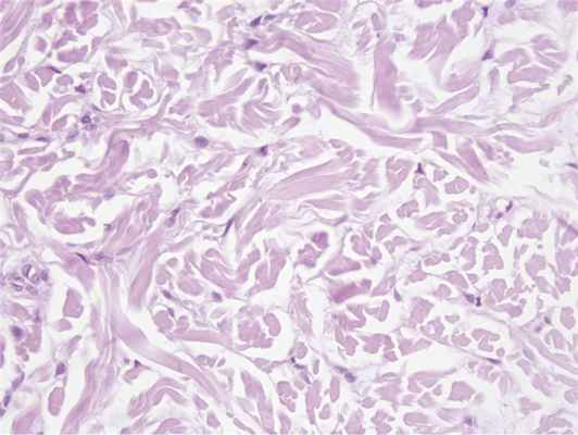 Пахидермодактилия является редко встречающимся доброкачественным поверхностным фиброматозом. Морфологические изменения при пахидермодактилии характеризуются гиперкератозом, акантозом, увеличением толщины дермы, выраженной в разной степени пролиферацией фибробластов, иногда отложениями муцина. При иммуногистохимическом исследовании в дерме выявляют увеличение количества коллагенов III и V типов [5, 6]. При электронной микроскопии, по данным отдельных авторов [7], отмечают уменьшение диаметра коллагеновых волокон ретикулярной дермы.