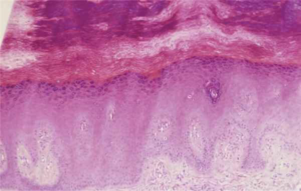 Рис. 4. Выраженный ортогиперкератоз. Ув. 100.