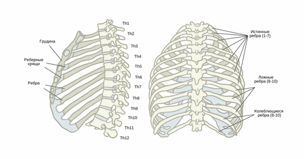 Движение ребер можно оценить в двух местах: в задне-переднем направлении через углы ребер и передней-заднем направлении через грудино-реберные суставы.