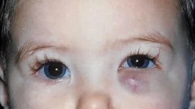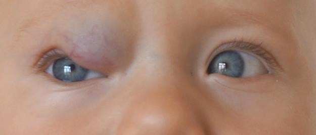Капиллярная гемангиома поражает обычно кожу век, конъюнктиву глазного яблока, вторично распространяясь в глазницу.