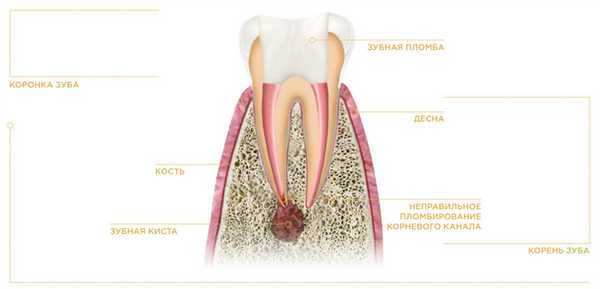 - Некачественное эндодонтическое лечение, приведшее к воспалению верхушки корня;