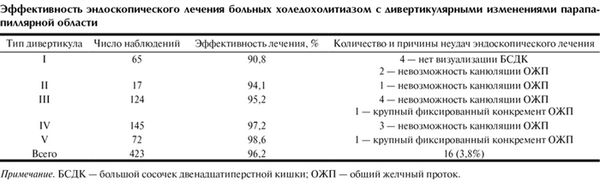 Эффективность эндоскопического лечения больных холедохолитиазом с дивертикулярными изменениями парапапиллярной области