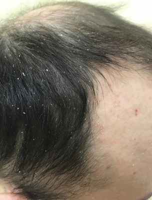 Рис. 1. Активное шелушение кожи волосистой части головы при себорейном дерматите.