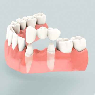 Постановка мостовидных протезов возможна, если по обе стороны отсутствующего зуба имеются сохранные зубы, к которым протез может быть прикреплен. «Опорные» зубы обтачиваются, на них устанавливаются коронки, на которых закреплен элемент протеза, заменяющий отсутствующий зуб или несколько зубов. Мостовидные протезы (мосты) изготавливаются в зуботехнической лаборатории.
