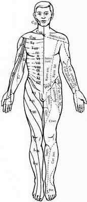 Установлено, что формирование ощущения боли начинается на уровне ядер зрительного бугра, а осознание боли и локализация ее по отношению к определенной части тела осуществляются при обязательном участии сенсомоторной зоны коры головного мозга. При заболеваниях внутренних органов известны так называемые отраженные боли, проецирующиеся в определенные зоны кожной поверхности (зоны Захарьина — Геда). Так, при стенокардии кроме болей в сердце ощущается боль в левой руке и лопатке. При болевых, тактильных и температурных раздражениях "активных" точек кожи (иглоукалывание или акупунктура) включаются цепи рефлекторных реакций, опосредуемых центральной и вегетативной нервной системой.