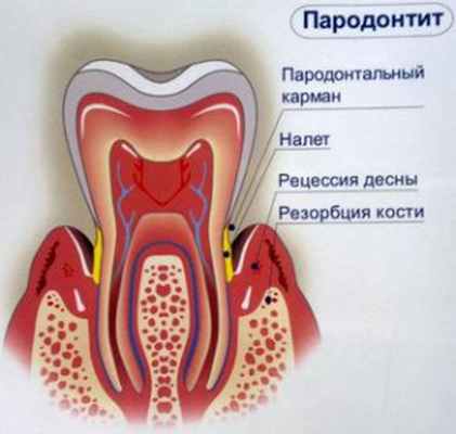 Справка! Пародонтит – воспалительное заболевание тканей пародонта (тканей, которые окружают зуб и служат ему опорой). Для пародонтита характерно бессимптомное течение, что является причиной позднего обращения к врачу, когда мягкая и костная ткань уже основательно разрушена и зубу попросту не за что держаться.