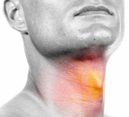- другие опухоли – добро- и злокачественные. Из доброкачественных дифференциальную диагностику чаще всего проводят с липомами либо папилломами гортани, из злокачественных – с фибросаркомами. В последнем случае это может быть метастатическое новообразование – то, которое сформировалось из клеток, перенесенных с током крови и/или лимфы из опухолей других органов и тканей; – воспаление регионарных лимфатических узлов; – воспаление регионарных лимфатических сосудов;