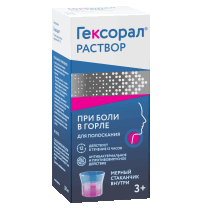 Для полоскания горла раствор ГЕКСОРАЛ ® на основе гексэтидина с добавлением эфирных масел можно использовать по рекомендации врача с трехлетнего возраста 6 .