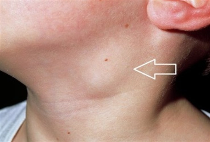 Подчелюстная лимфаденопатия чаще наблюдается при аденовирусной инфекции, парагриппе, заражении риновирусами или ассоциацией вирусных патогенов. Обычно лимфатической реакции предшествуют так называемые катаральные явления — насморк, ощущение першения в горле, боль при глотании, сухой кашель, слезотечение. Зачастую повышается температура, причем до высоких (фебрильных) цифр — от 38° С и выше. Характерна умеренно выраженная астения — слабость, разбитость, утомляемость. Возможны мышечные и суставные боли.