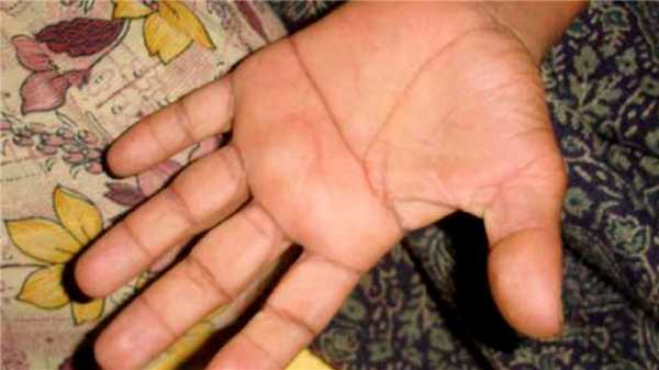 «Обезьянья складка» на ладошке. У людей с синдромом Дауна одна поперечная ладонная складка, а не две, как обычно. Фото: Indian journal of human genetics / Open-i (CC BY-NC-SA 2.0)