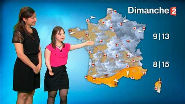 Мелани Сегард с синдромом Дауна рассказывает о погоде на французском телевидении. Фото: Franceinfo