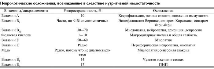 Неврологические осложнения, возникающие в следствие нутритивной недостаточности