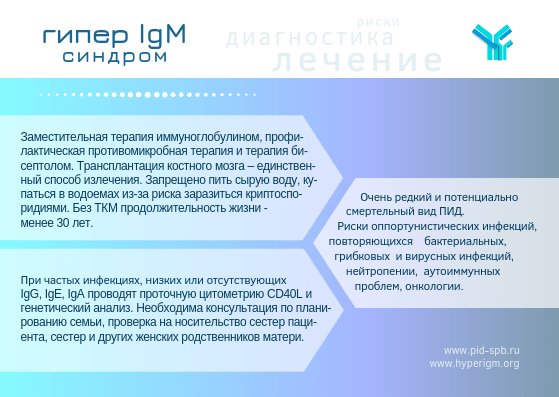 Фонд в поддержку лечения иммунодефицитов: Синдром гипер-IgM: Исчерпывающая информация о синдроме гипер-IgМ, включая информацию о диагностике и лечении, а также рекомендации для пораженных людей