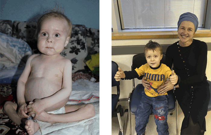 Фото слева: так Ваня выглядел до того, как профессор Полина Степенски успешно провела ему ТКМ в медицинском центре Хадасса.