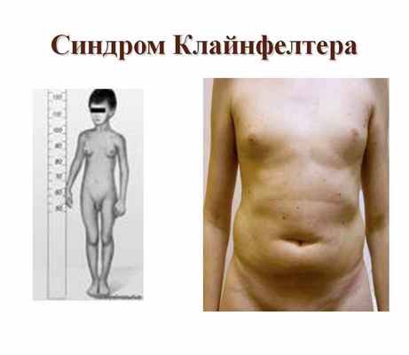 Аномалия в количестве хромосом ведет к внутренним и внешним нарушениям – мальчикам с данным синдромом свойственно астеническое или евнуховидное телосложение, отсутствие или слабая выраженность оволосения подмышечных впадин, лица и лобка (в период полового созревания), недоразвитость половых органов, бесплодие, умеренно выраженные отклонения в умственном развитии.