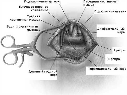Стойкий болевой синдром при диагностированном синдроме грудного выхода является показанием к хирургической операции — освобождению сосудисто-нервного пучка от сдавливания.