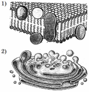 1. Перечисленные ниже признаки, кроме двух, используются для описания строения, функций изображенной клеточной структуры. Определите два признака, «выпадающие» из общего списка, и запишите цифры, под которыми они указаны.