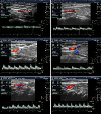 Наиболее удобной для измерения ПССК является верхняя щитовидная артерия в связи с более поверхностным её нахождением, а также постоянством расположения самой артерии и её передне-медиальной ветви. Даже если условия предоставляют возможность и требуют оценки ПССК в нижней щитовидной артерии, всегда требуется измерение вместе с тем ПССК верхней артерии. Такая практика сохранит преемственность в диагностике. То есть можно будет сравнить значения с предыдущими, настоящими и последующими данными.