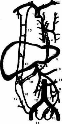 Венозный отток от наддвенадцатиперстной части проходит по желчно-пузырной вене (v. су sued) в воротную вену (v. portae), от рет-родуоденальной и панкреатической части — по панкреатодуоденальным венам (vv. pancrea-licoduodenales) в верхнюю брыжеечную вену (v. mesenterica superior).