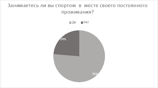 Результат данного опроса показал, предположительно все респонденты имеют хороший иммунитет, благодаря которому они способны противостоять неблагоприятным условиям среды. Только у 8,2 % из них симптомы болезненного состояния проявляются часто. 76,3 % опрошенных занимаются спортом, ведут здоровый образ жизни в привычных для них условиях среды. И только 23,7 % не получают достаточной физической нагрузки.