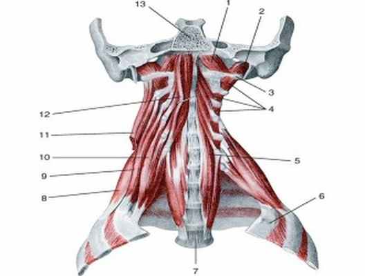 Мышечные ткани данного отдела позвоночника делятся на две части: заднюю и переднюю. Мышцы, расположенные спереди, делятся на поверхностные, глубинные и серединные.