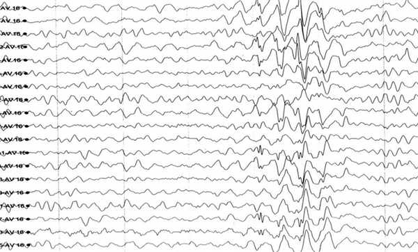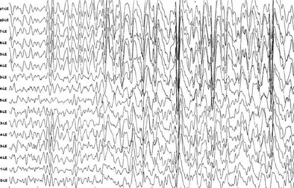 Он описывается как высоковольтные множественные пики и волны или комплексы пик — волна в лобных отведениях обоих полушарий. Как отметили в свое время W. Penfield и Н. Jasper (1954), фотоконвульснвный ответ нередко генерализован, но амплитуда ответа максимальна в лобно-центральных отведениях.