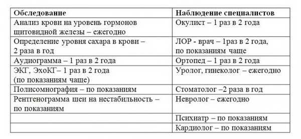 Примерный план медицинского наблюдения за взрослым с синдромом Дауна