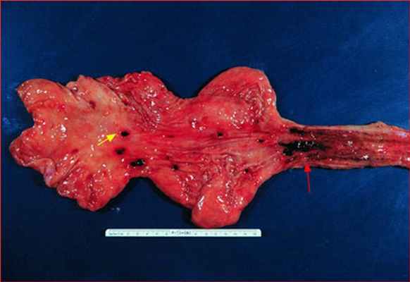 Сосудистые эктазии (ангиодисплазии, артерио-венозные мальформации) представляют собой расширенные извитые сосуды, как правило выявляющиеся в слепой и восходящей ободочной кишке. В большинстве случаев они обнаруживаются в возрасте > 60 лет и чаще всего служат причиной кровотечения из нижних отделов желудочно-кишечного тракта Этиология Кровотечение в желудочно-кишечном тракте может развиваться на любом уровне – от ротовой полости до ануса, протекать в явной и скрытой форме. Клинические проявления зависят от локализации источника. Прочитайте дополнительные сведения в этой возрастной группе. Они возникают вследствие возрастных дегенеративных изменений, вне связи с другими изменениями сосудов. Как правило, определяются 2–3 участка эктазии размером 0,5–1,0 см, ярко-красного цвета, уплощенных или слегка приподнятых, покрытых очень тонким слоем эпителия.