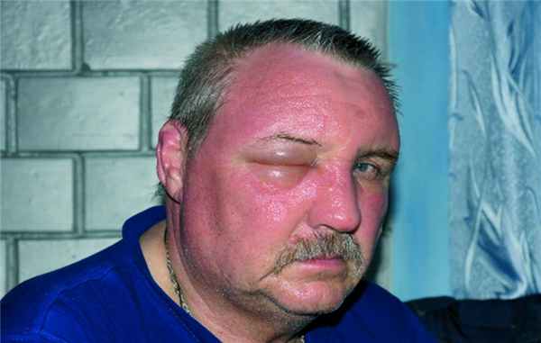 При поступлении в ГНЦ МЗ РФ тяжесть состояния больного была обусловлена панцитопенией, инфекционными осложнениями, клинической картиной токсического (аллергического) дерматита, протекавшего с генерализованной папулезной сыпью, болями в левой половине живота, астеническим синдромом.