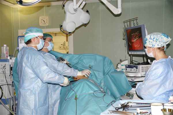 Оперативное вмешательство выполняется при помощи эндоскопической техники из 3-4 маленьких разрезов размером 1-1,5см. Продолжительность операции 40-50 минут. Пациенты выписываются из стационара на 3-5 сутки после операции.