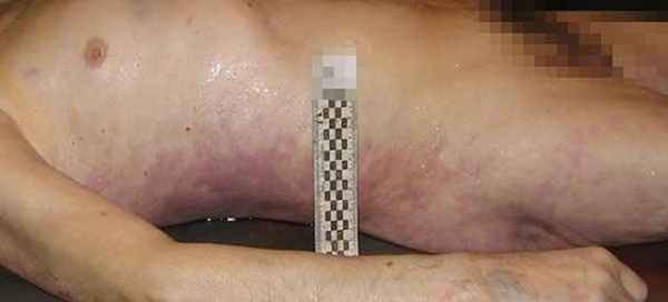 Эти изменения кожи трупного пятна встречаются реже других, например: при смерти от острой кровопотери, при утоплении, особенно в холодное время года. Выраженный спазм сосудов сохраняется как в коже, так и в подкожной клетчатке и не только в венах, но и в артериях.