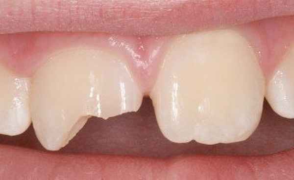 К травмам зубов относятся различные повреждения их структур. Это может быть перелом какой-либо части зуба, скол, ушиб и так далее. К травмированию может привести удар, например, при занятиях некоторыми видами спорта (бокс) или во время драки. Получить травму можно и при езде на велосипеде (о руль), в аварии, при падении и во многих других ситуациях. Скол зуба возможен и при попытке разгрызть твердые орехи или сухарь. Среди прочих причин, приводящих к травме зубов, следует отнести неопытность или небрежное отношение стоматолога при установке штифта, препарирования зуба.