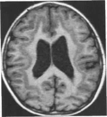 МРТ. Т1-зависимая аксиальная томограмма. “Двойная кора”.