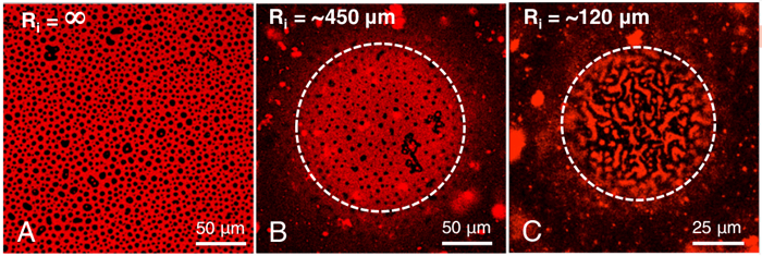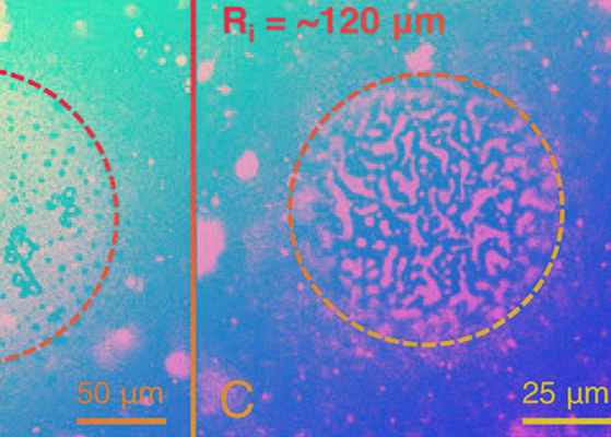 Оказалось, что на поверхностях с небольшой кривизной (то есть плоских или почти плоских) сурфактант находится в состоянии, в котором сосуществуют две жидких фазы: основная односвязная среда с небольшими включениями второй фазы, существующих в виде доменов круглой формы. При увеличении кривизны поверхности (то есть уменьшения радиуса частицы, на которую происходит осаждение), структура пленки сильно перестраивается и происходит образование вытянутых линейных доменов. Для поверхностного натяжения всех межфазных границ порядка 45 миллиньютонов на метр, характерного для сурфактантов, такой переход происходит при радиусе кривизны около 100 микрон, то есть как раз порядка размера альвеолы легких.