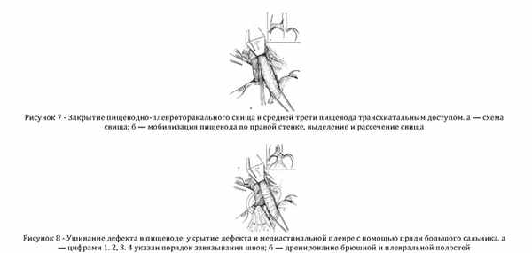 - Дефекты стенки пищевода и другого органа поочередно ушивают.