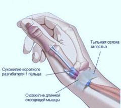 Большой палец руки — самый активный, без него не обходится почти ни одно движение. Сухожилия отводящей мышцы большого пальца и мышцы разгибателя располагаются в одном канале. При воспалительном процессе сухожилия он сужается, что раздражает болевые рецепторы.