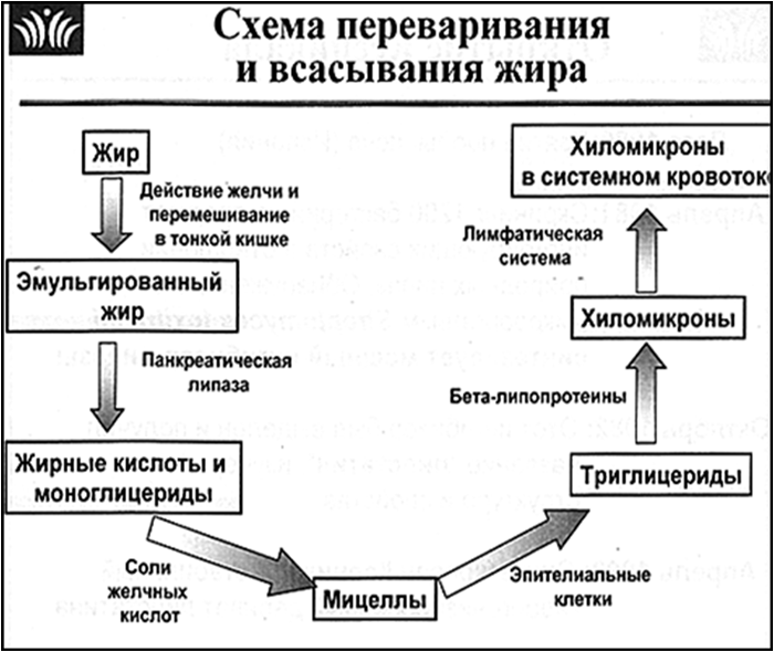 Если вовсе отказаться от жиров не выходит, давайте разберемся, как они перерабатываются. В желудке и до него с ними происходит мало интересного: для расщепления жиров нужна немного более «тяжелая артиллерия», чем есть в слюне и в желудке (хотя их там поджидают лингвальная и желудочная липазы, они не очень активны в кислой среде, в которой работают, да и крупные капли жиров доступны им лишь с поверхности).