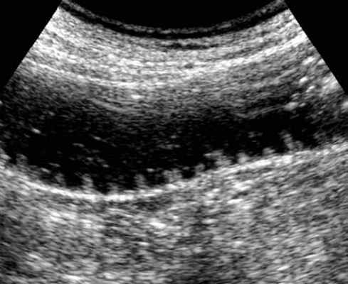 Очень важно динамическое наблюдение за перечисленными признаками, что отдает пальму первенства УЗИ как наиболее адекватному и безопасному методу визуализации при адинамической непроходимости.