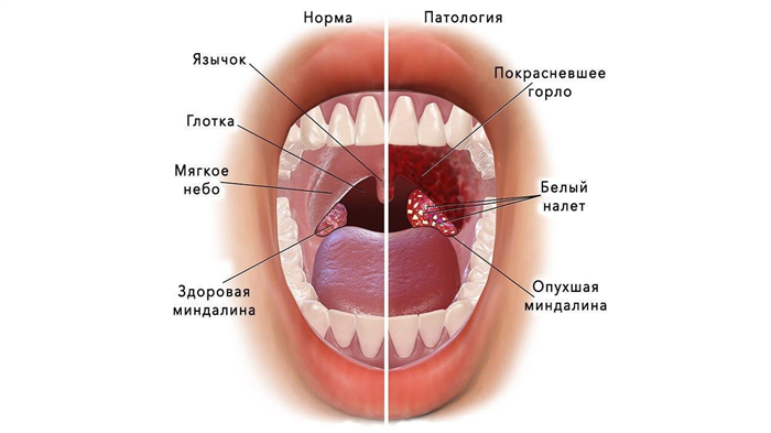 Типичные симптомы включают боль в горле, боль при глотании, повышение температуры тела, отек и покраснение.